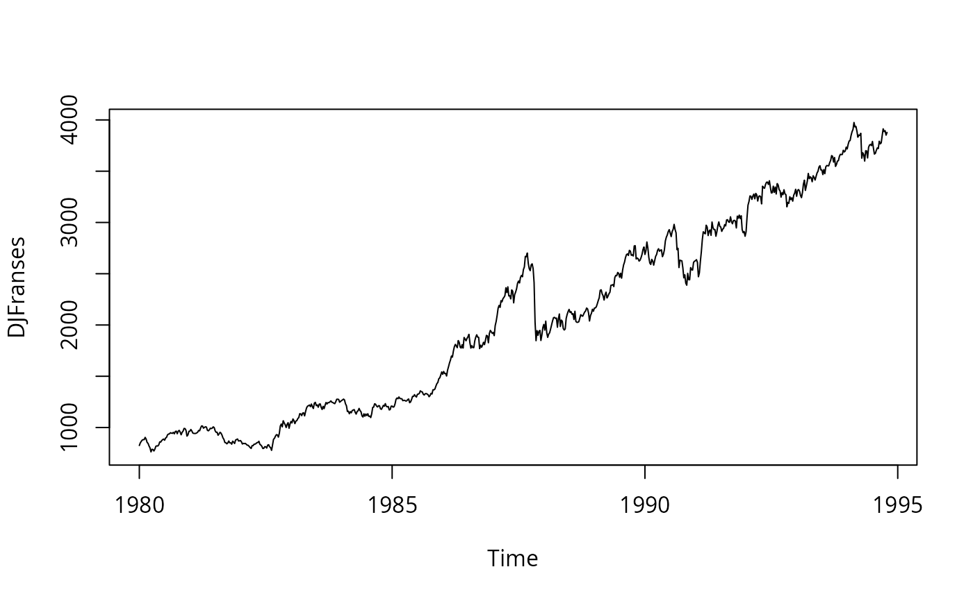 DJFranses.RdDow Jones index time series computed at the end of the week where week is assumed to run from Thursday to Wednesday.