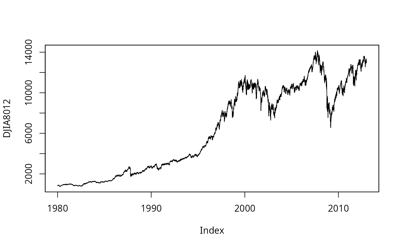 DJIA8012.RdTime series of the Dow Jones Industrial Average (DJIA) index.
