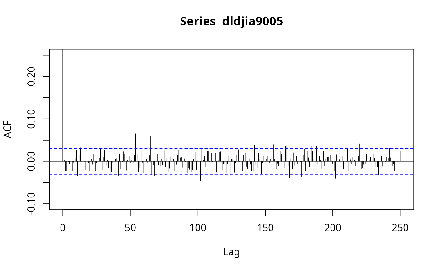 acf(dldjia9005, na.action = na.exclude, lag.max = 250, ylim = c(-0.1, 0.25))