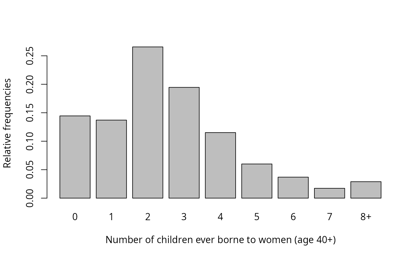 xlab = "Number of children ever borne to women (age 40+)",
