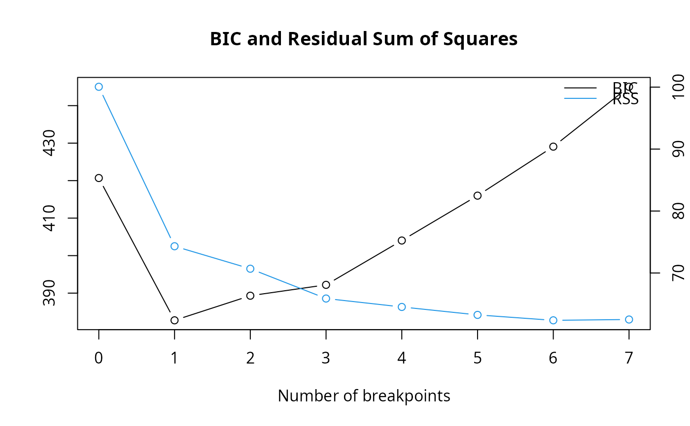bp <- breakpoints(subs ~ citeprice, data = log(journals), h = 20)