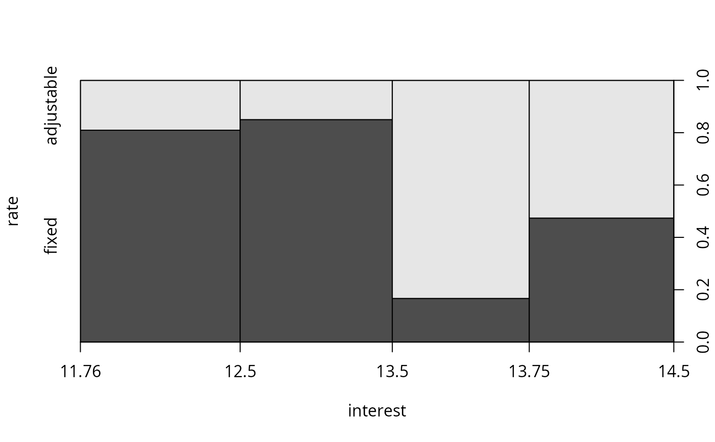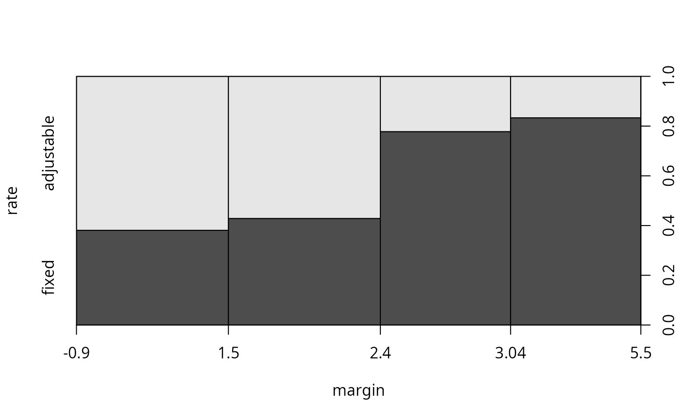 Mortgage.RdCross-section data about fixed versus adjustable mortgages for 78 households.