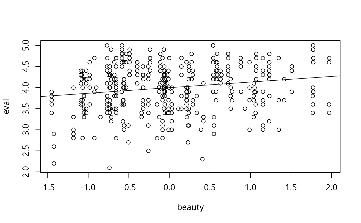 #> lm(formula = eval ~ beauty, data = TeachingRatings)