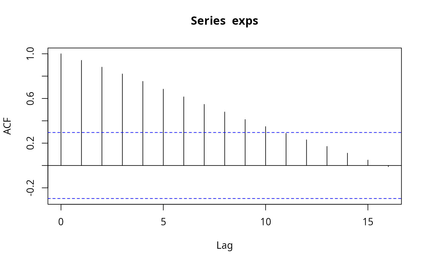#> Autocorrelations of series ‘exps’, by lag