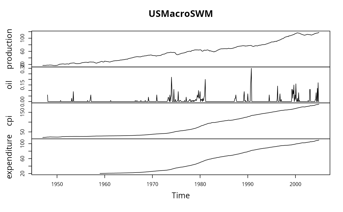 USMacroSWM.RdTime series data on 4 US macroeconomic variables for 1947–2004.