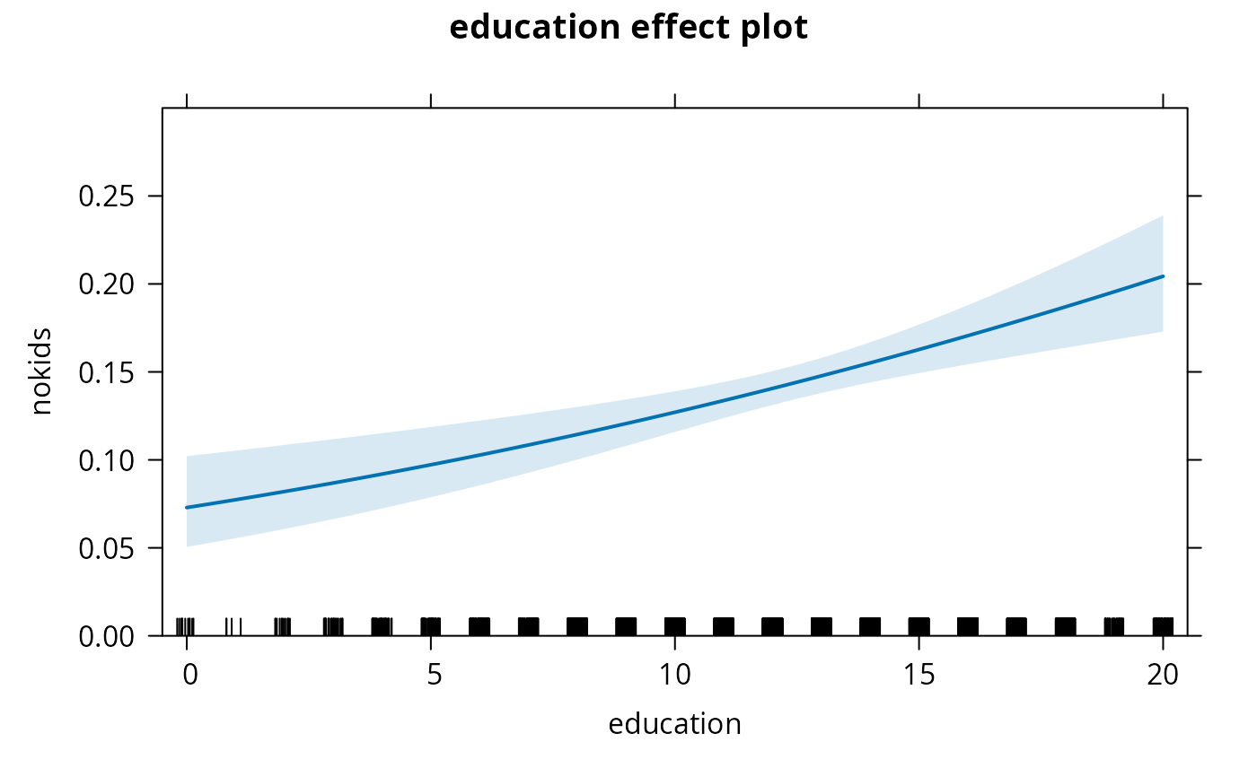 #> Model 3: nokids ~ trend + education + ethnicity + siblings