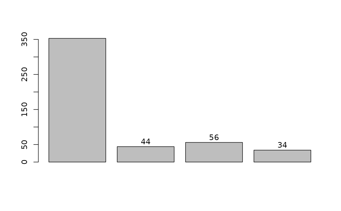 Notice that when the labels are placed on top of the bars, they may be clipped. This can be avoided by setting xpd=TRUE.