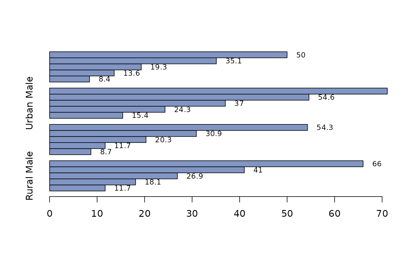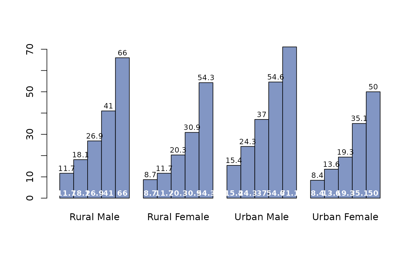 BarText(VADeaths, b=b, horiz = TRUE, beside = TRUE, cex=0.8)