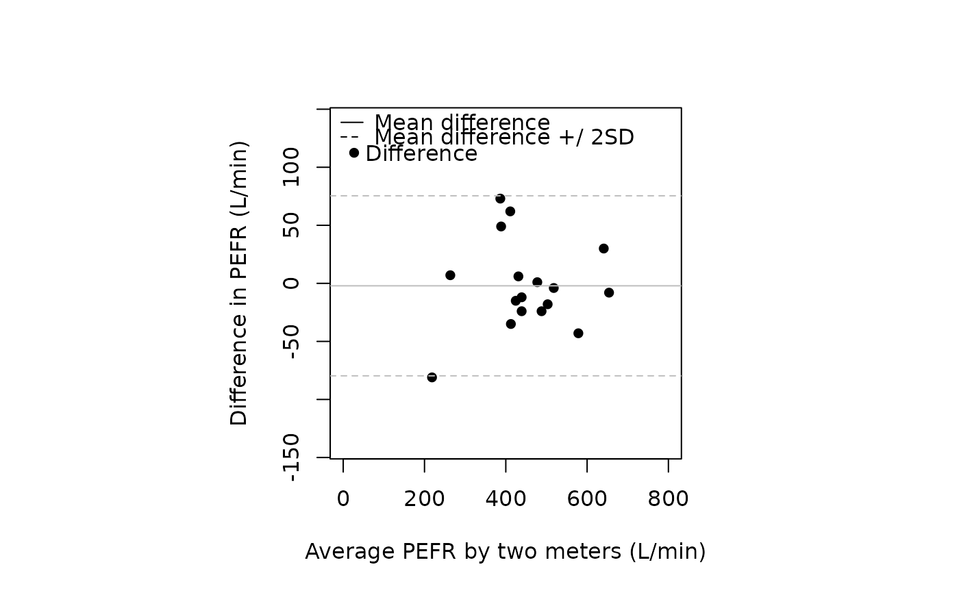ylab = "Difference in PEFR (L/min)", xlim = c(0,800),