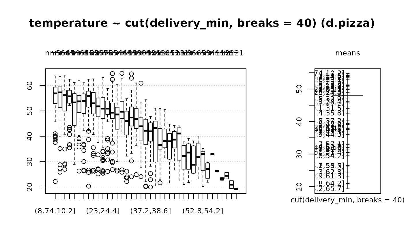 #> temperature ~ cut(delivery_min, breaks = 40) (d.pizza)