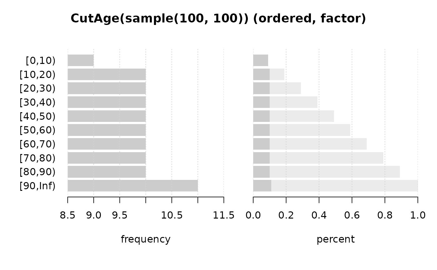 #> CutAge(sample(100, 100)) (ordered, factor)