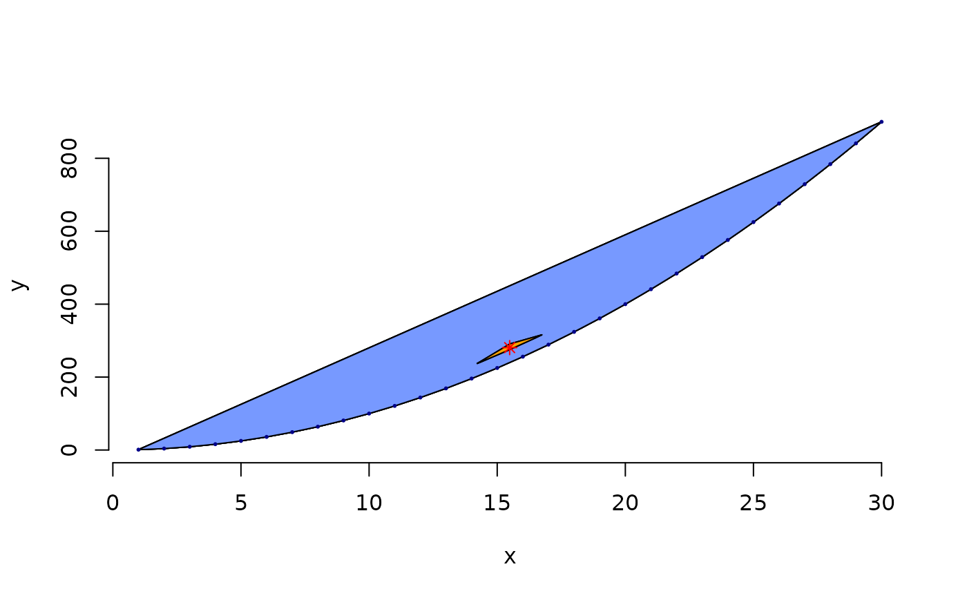 PlotBag(x=1:30,y=(1:30)^2,verbose=FALSE,dkmethod=2)