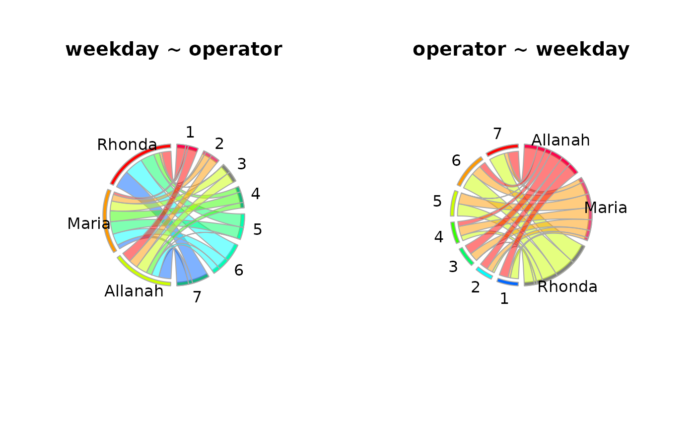 PlotCirc(tab, main="weekday ~ operator")