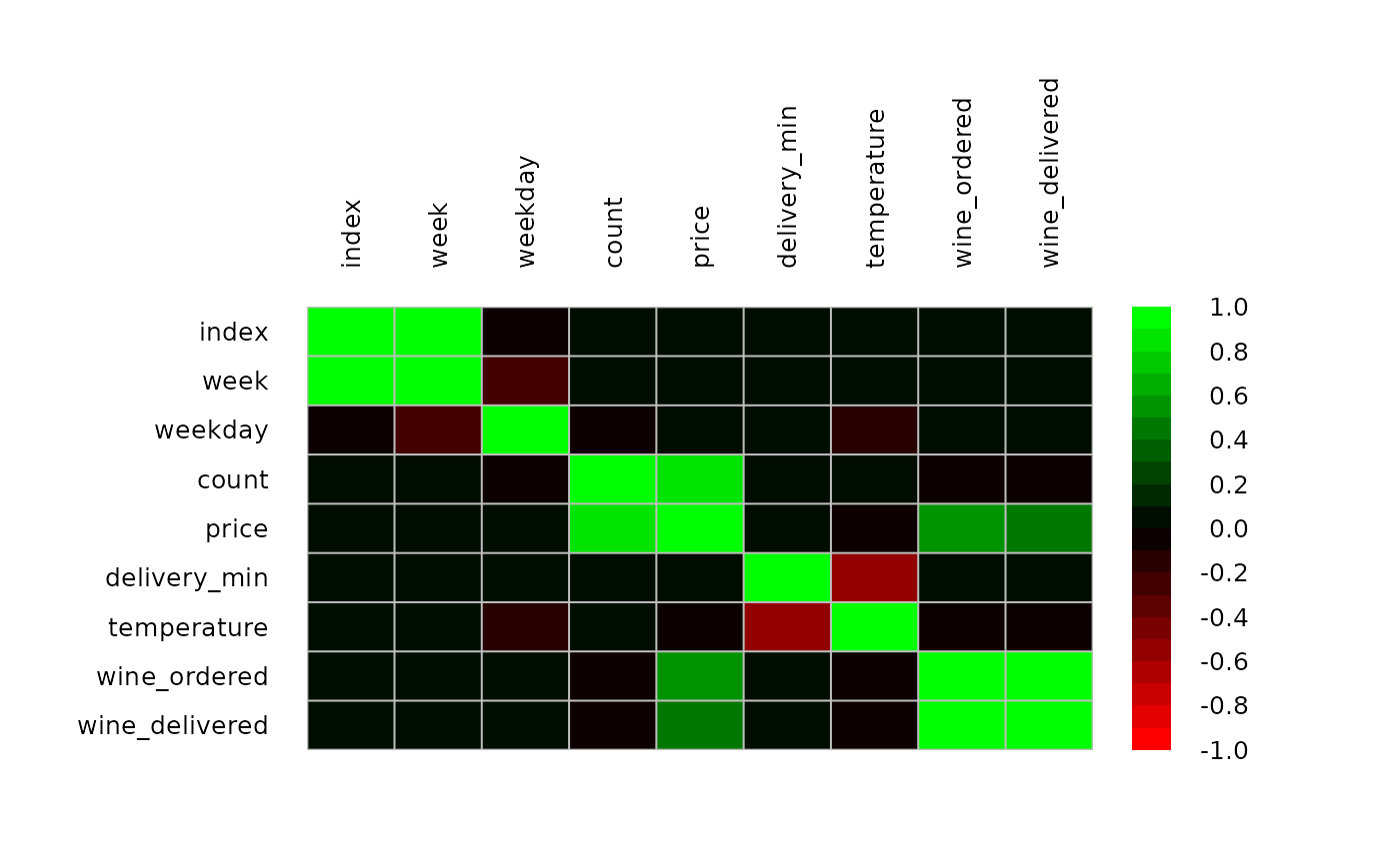 m <- cor(d.pizza[,sapply(d.pizza, IsNumeric, na.rm=TRUE)], use="pairwise.complete.obs")