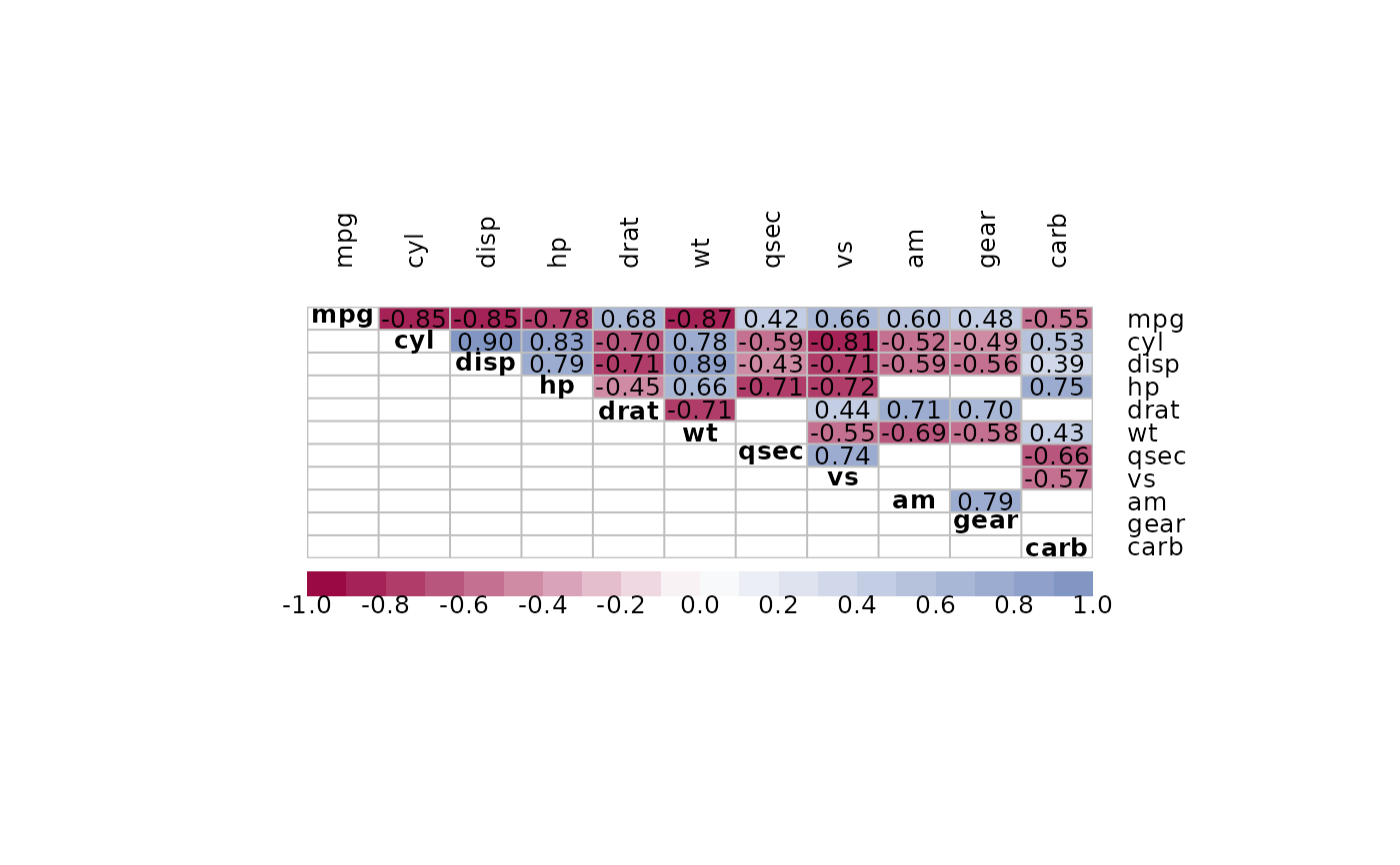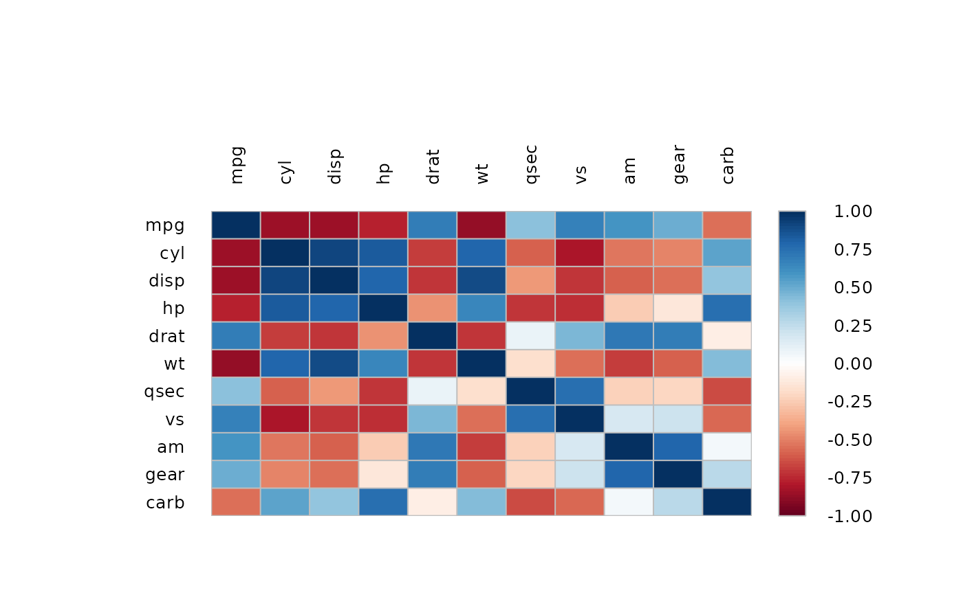 PlotCorr(m, col=Pal("RedWhiteBlue1", 100), border="grey",