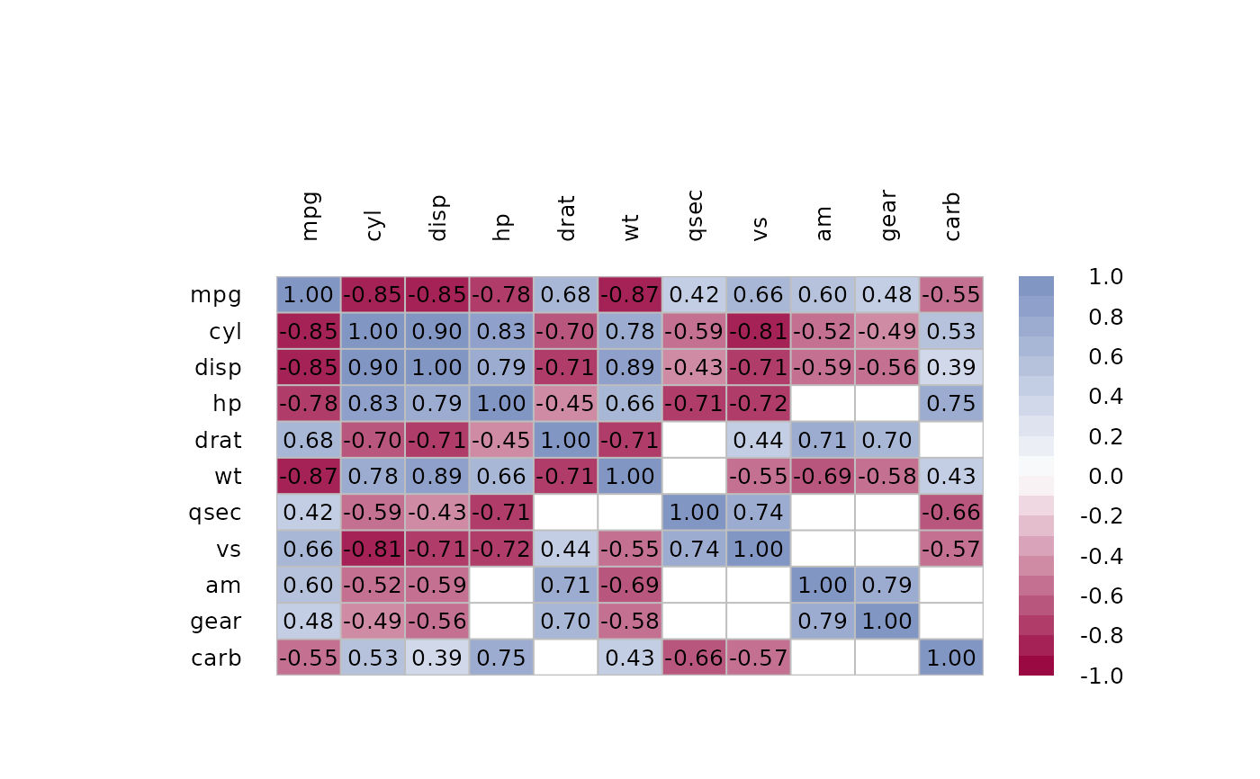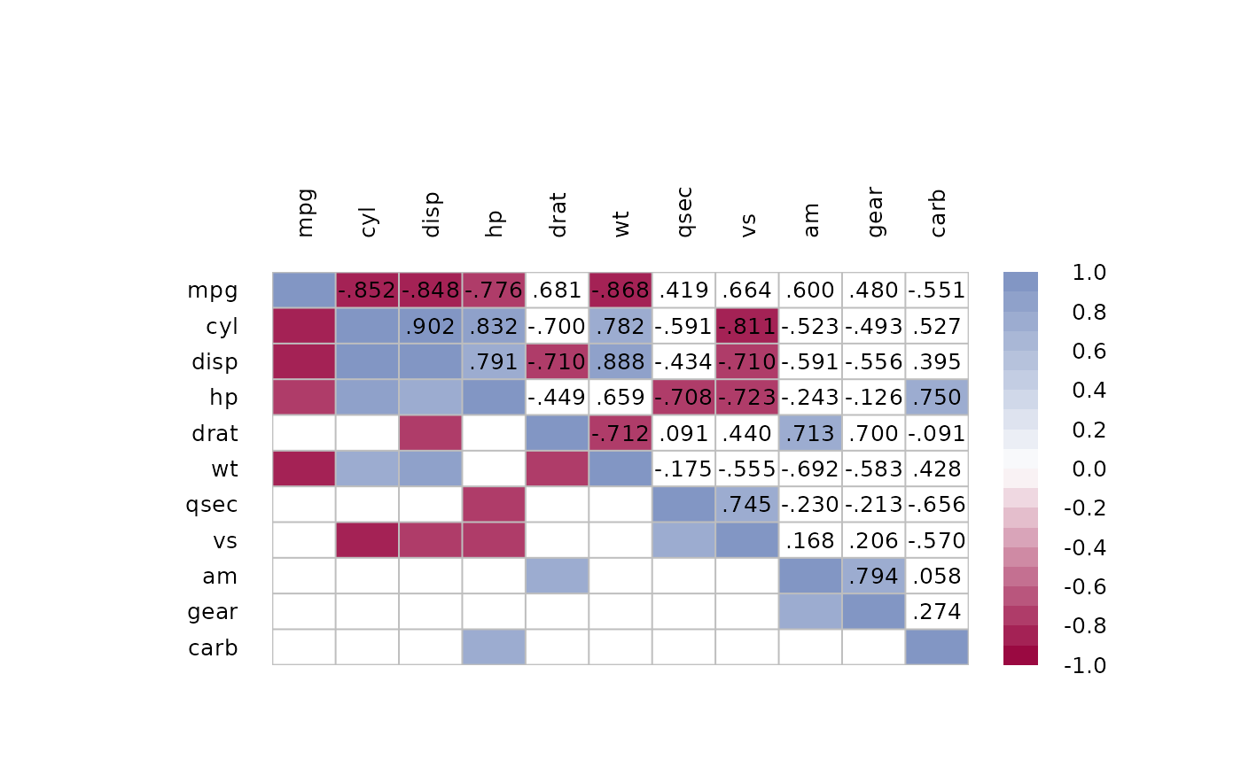 PlotCorr.RdThis function produces a graphical display of a correlation matrix. The cells of the matrix can be shaded or colored to show the correlation value.