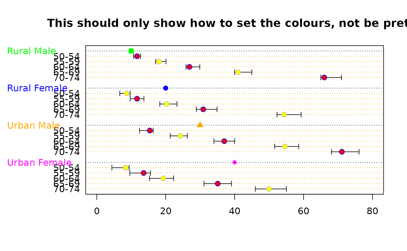 PlotDot(VADeaths, main="This should only show how to set the colours, not be pretty",