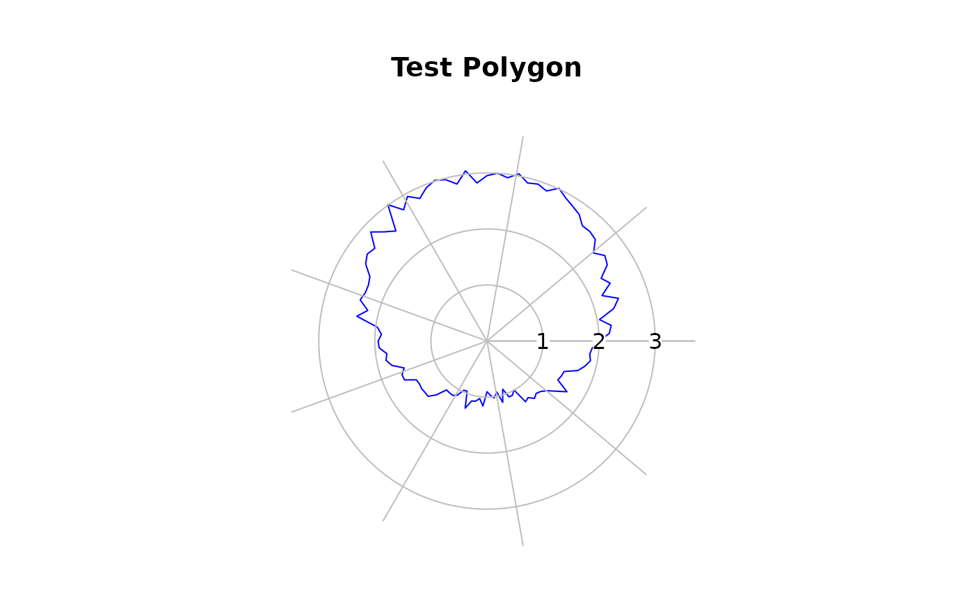 PlotPolar(testlen, testpos, type="l", main="Test Polygon", col="blue")