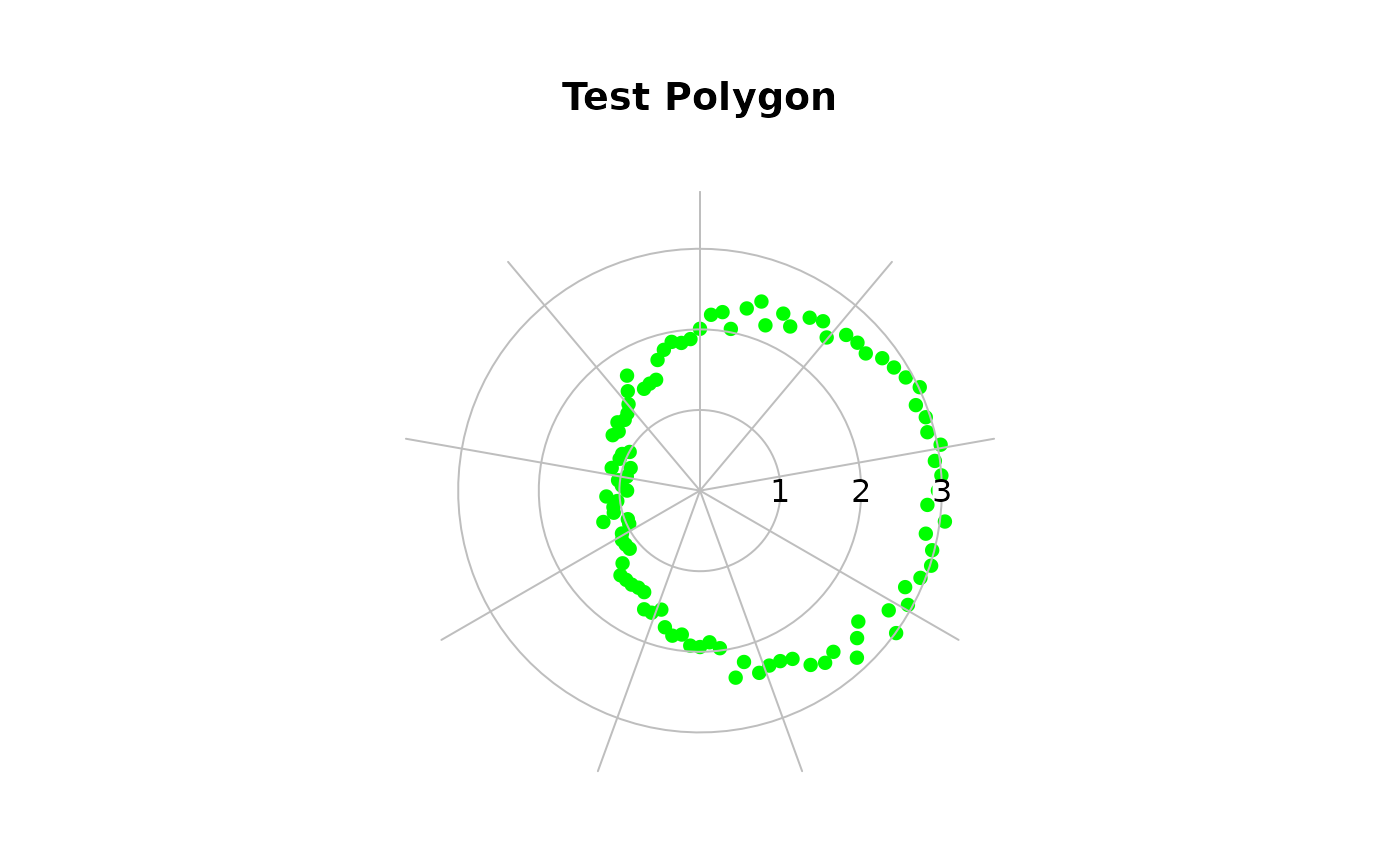 PlotPolar(testlen, -(testpos - pi/2), type="p", main="Test Polygon",