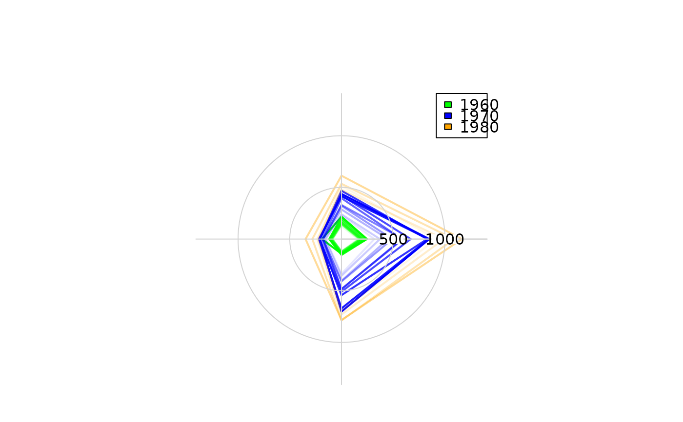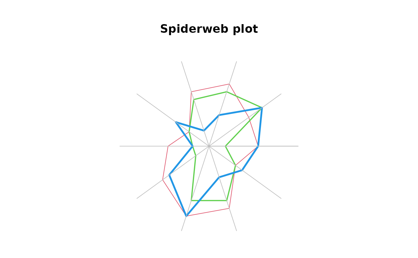 The function is rather flexible and can produce quite a lot of of different plots. So is it also possible to create spider webs or radar plots.