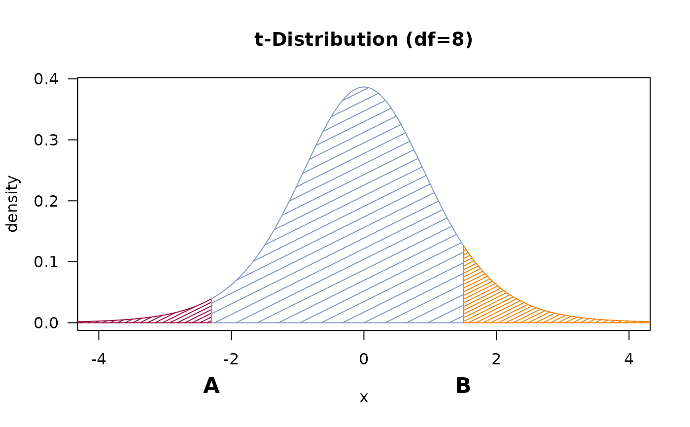 Produce a plot from a probability distribution with shaded areas. This is often needed in theory texts for classes in statistics.