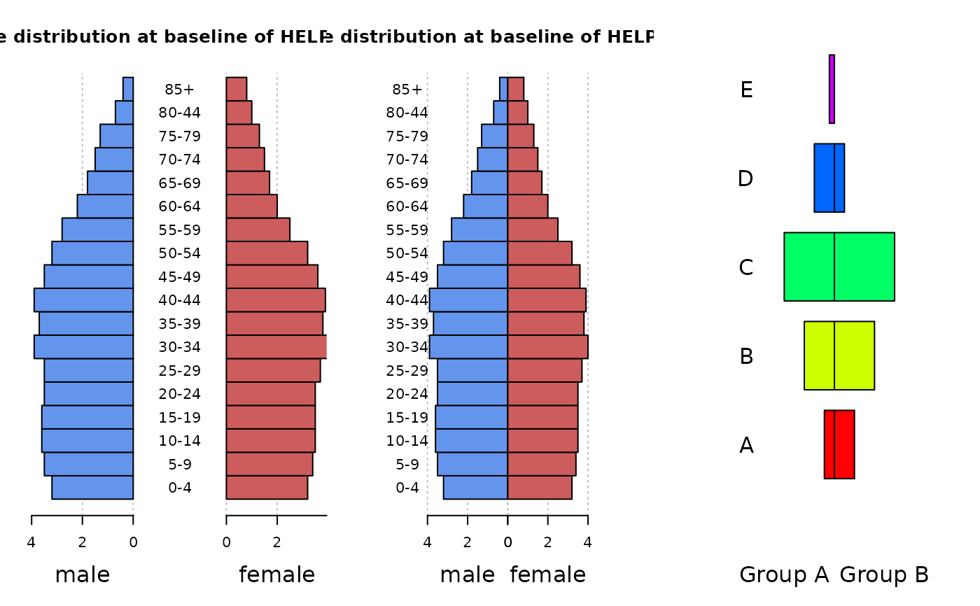 PlotPyramid.RdPyramid plots are a common way to display the distribution of age groups.