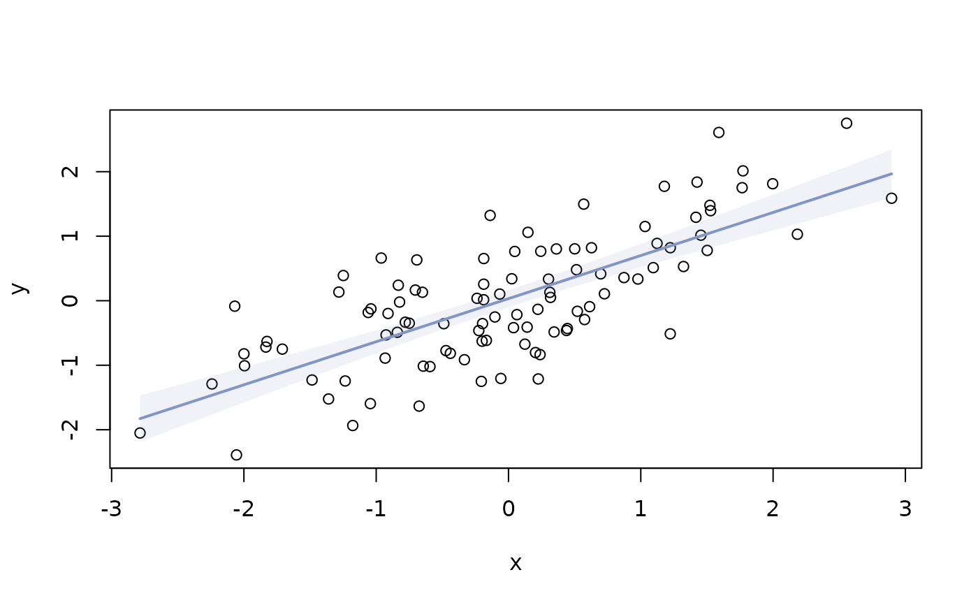 d.frm <- RndPairs(n=100, r=0.7, rdist2 = rlnorm(n = 100, meanlog = 1, sdlog = .8))