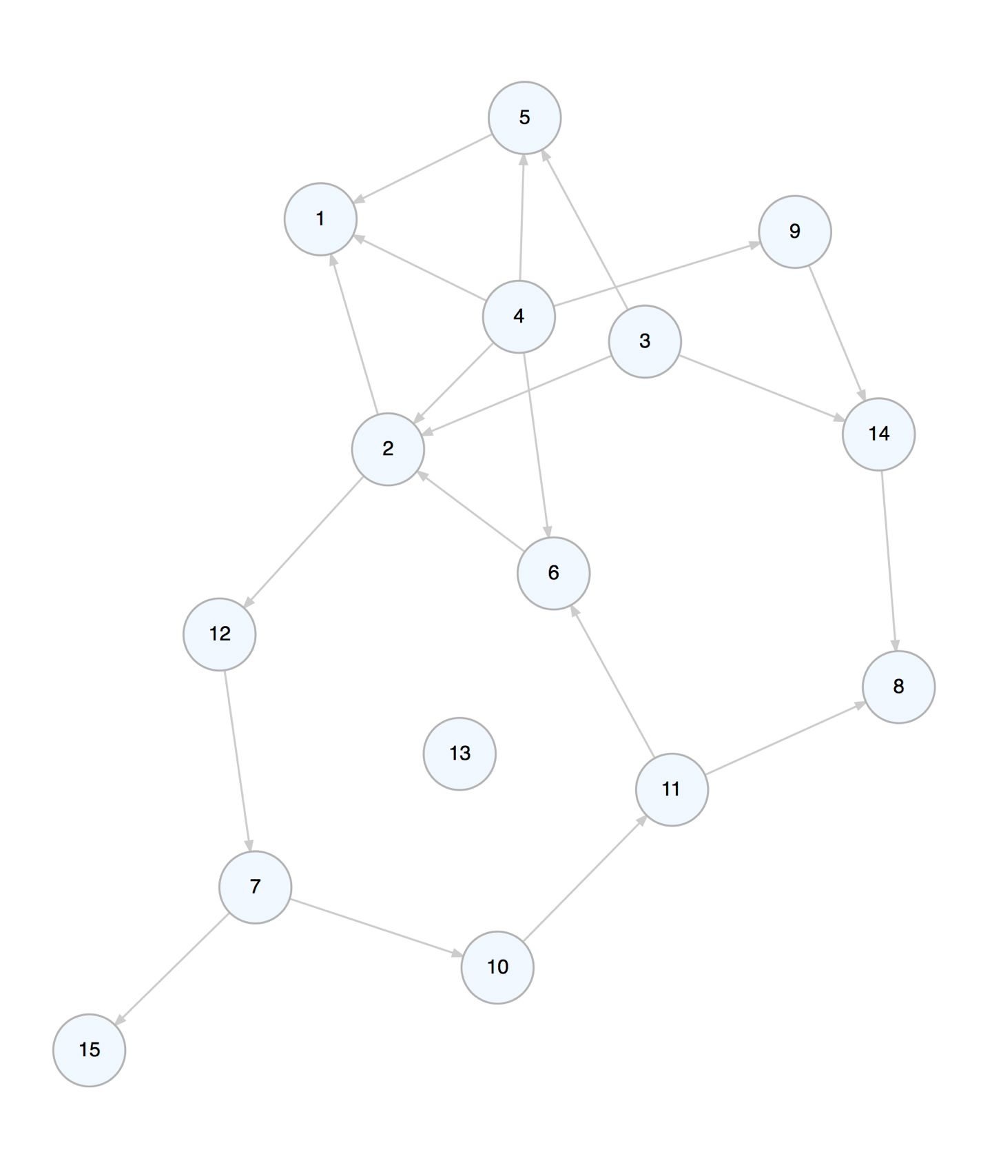 You can add one or more randomly generated graphs to a graph object. Here, let’s add a directed GNM graph with 10 nodes and 15 edges (the set_seed option makes the random graph reproducible).