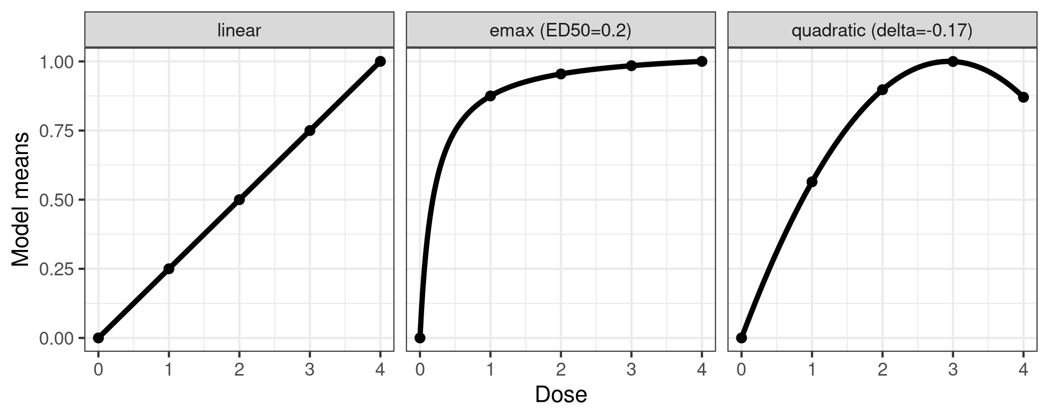 models <- Mods(linear = NULL, emax = 0.2, quadratic = -0.17,