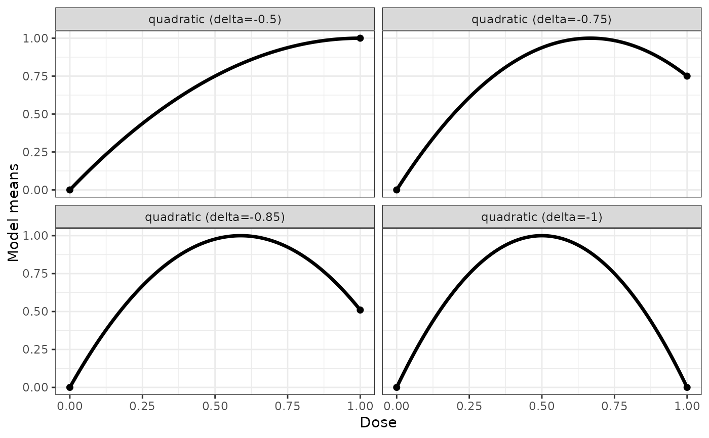 quadModList <- Mods(quadratic = c(-0.5, -0.75, -0.85, -1), doses = c(0,1))