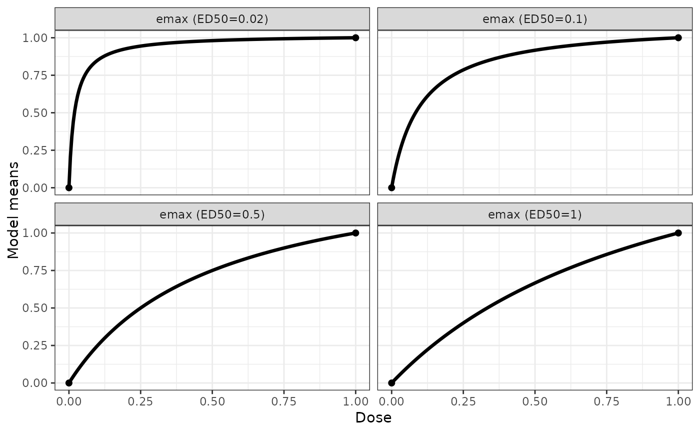 emaxModList <- Mods(emax = c(0.02,0.1,0.5,1), doses = c(0,1))