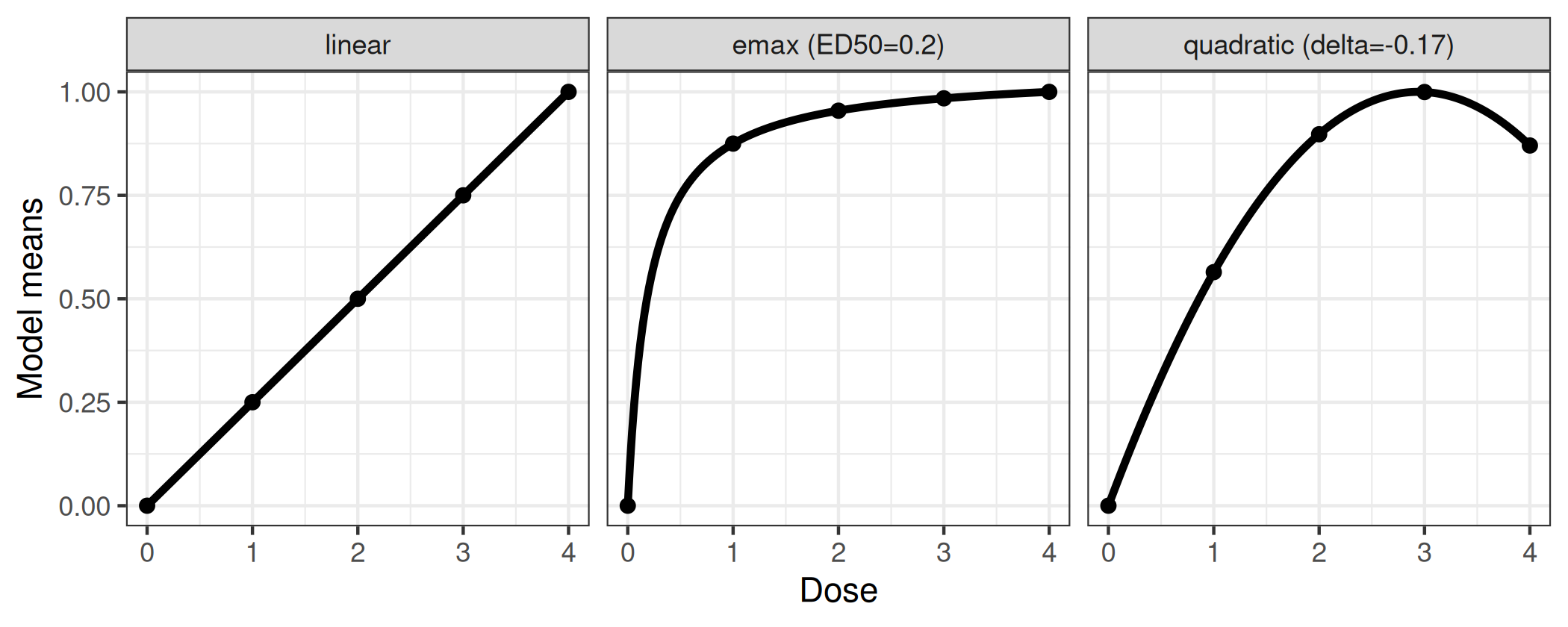 models <- Mods(linear = NULL, emax = 0.2, quadratic = -0.17,