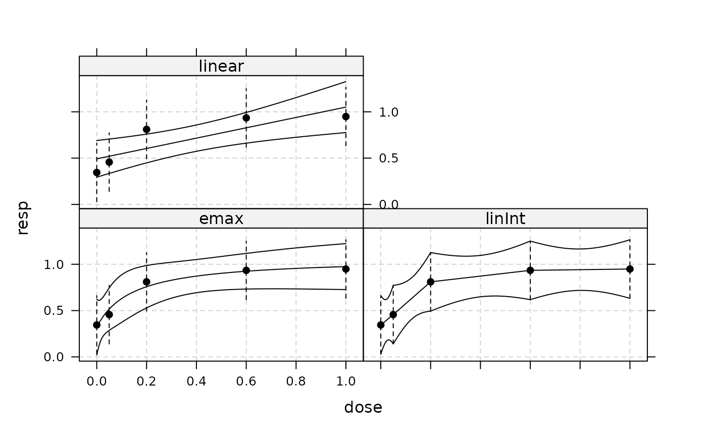 MM2 <- MCPMod(dose, resp, biom, models, Delta=0.5, selModel = "aveAIC")