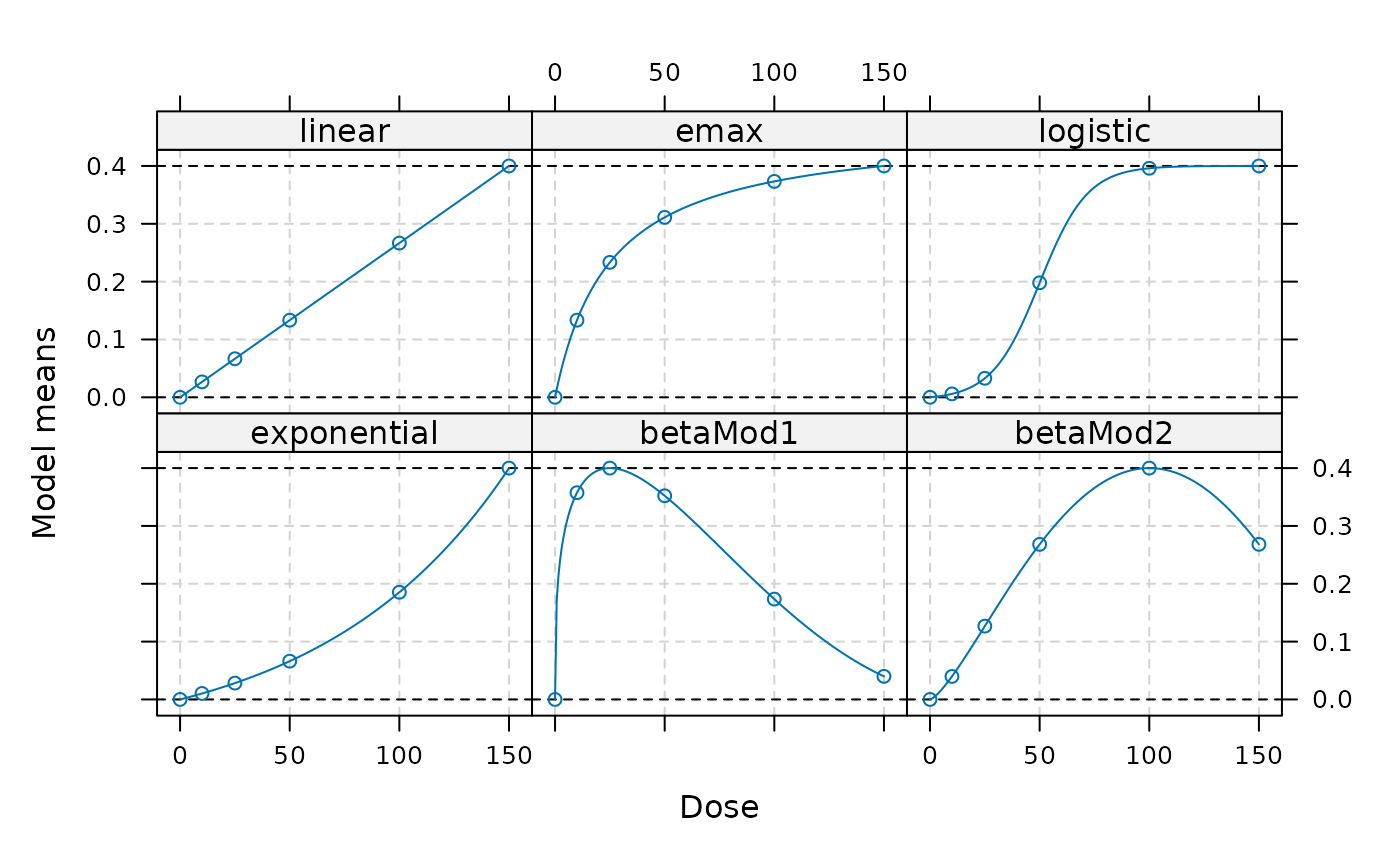#> linear emax logistic exponential betaMod1 betaMod2