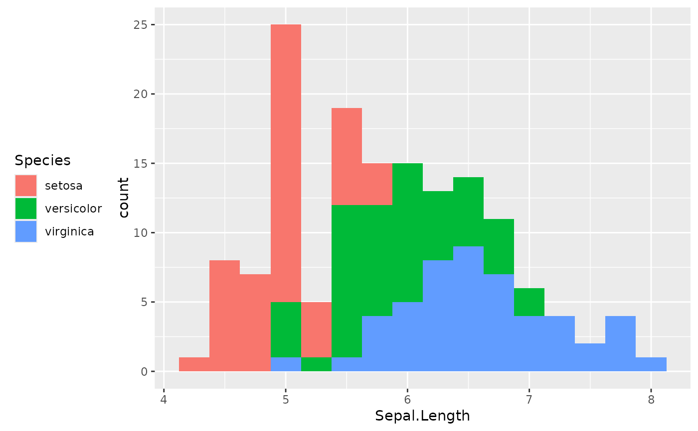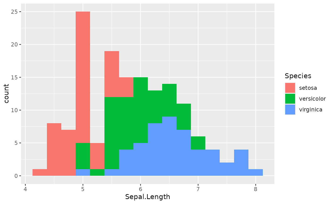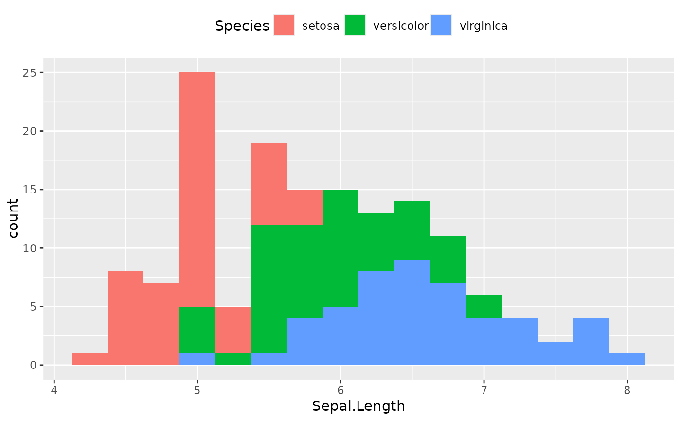 ggplot(iris, aes(Sepal.Length, fill = Species)) +