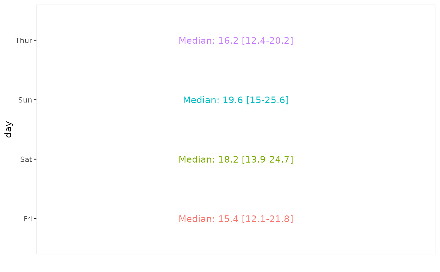 ggally_summarise_by(tips, aes(x = total_bill, y = day, colour = day))