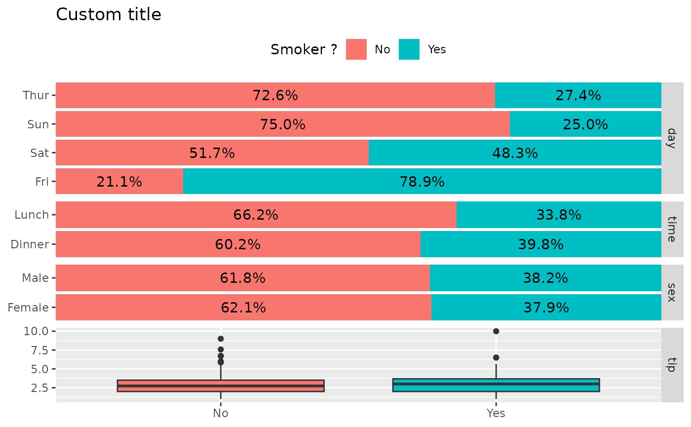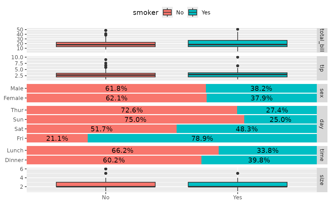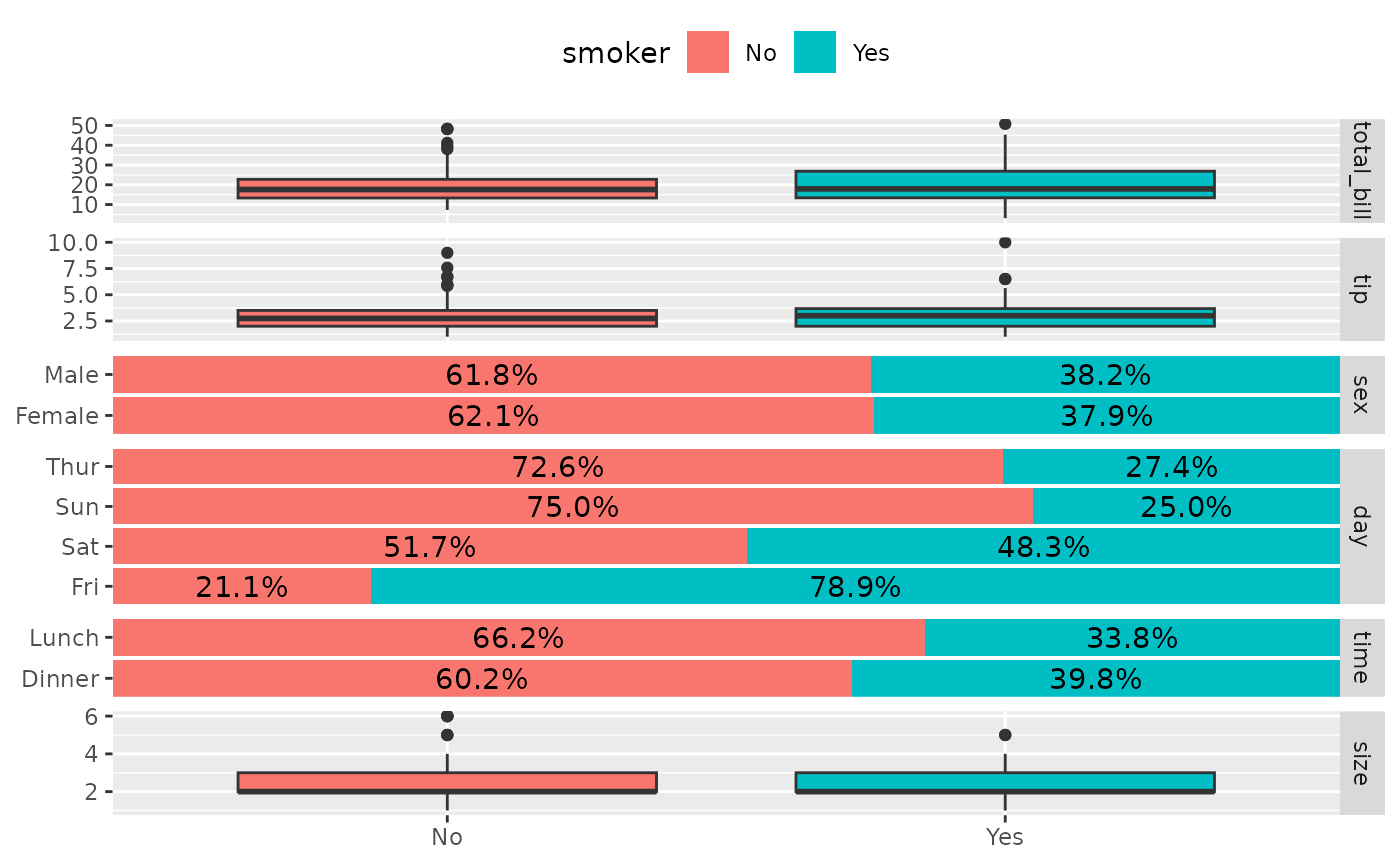ggbivariate(tips, "smoker", legend = 3)