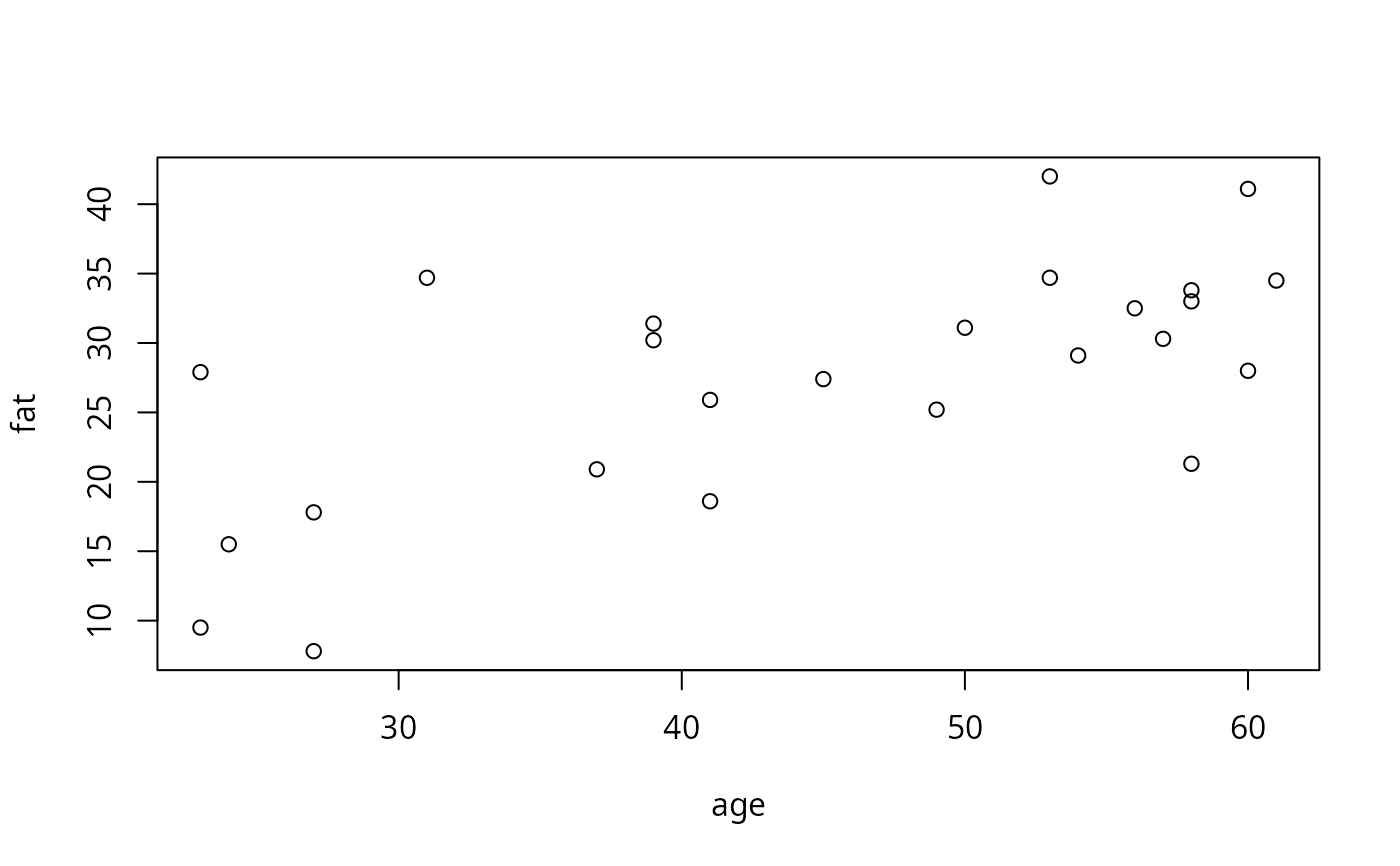 agefat.RdAge and body fat percentage of 25 normal adults.