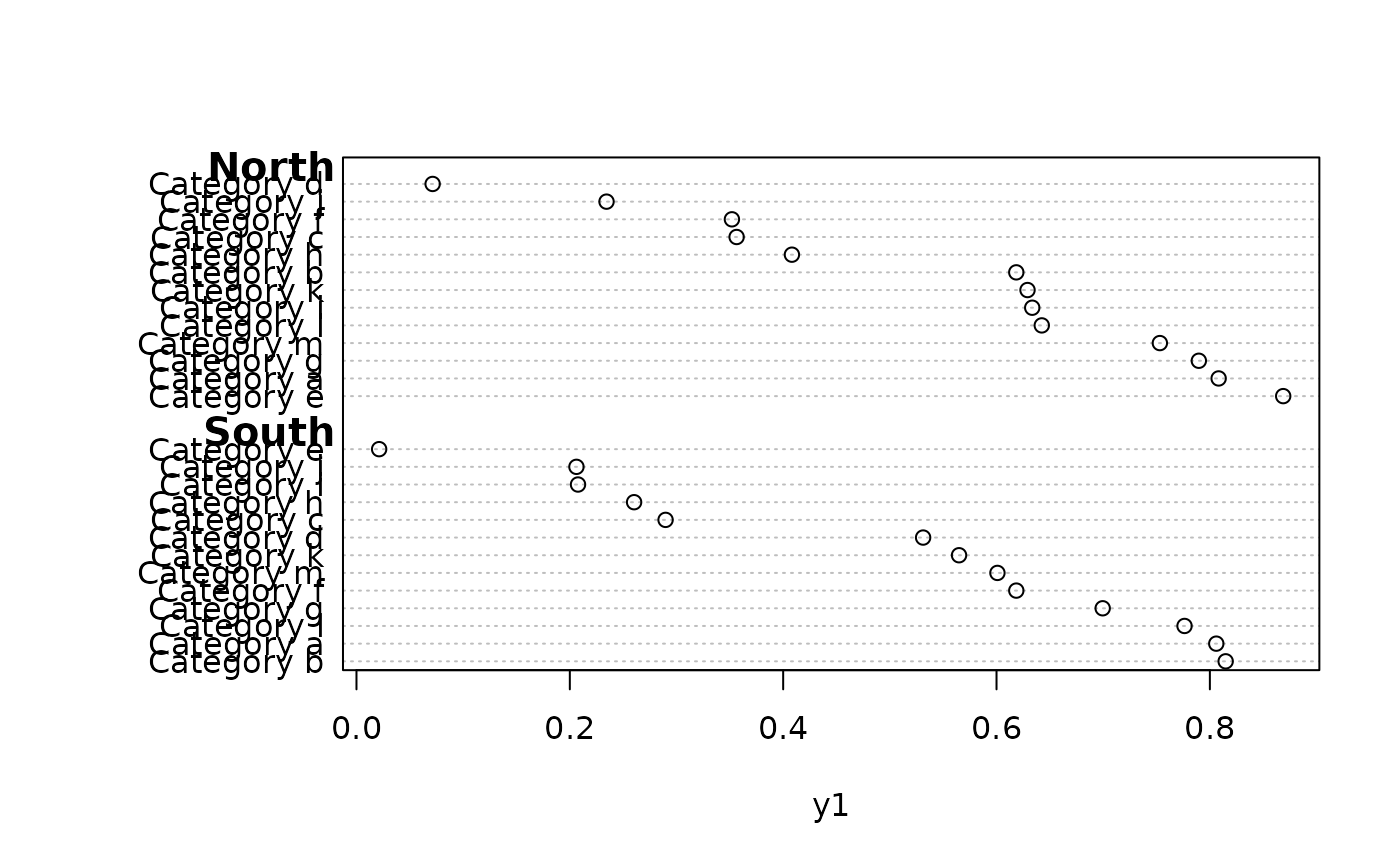## dotchart(y1, g, groups=maj, xlab='Y')
