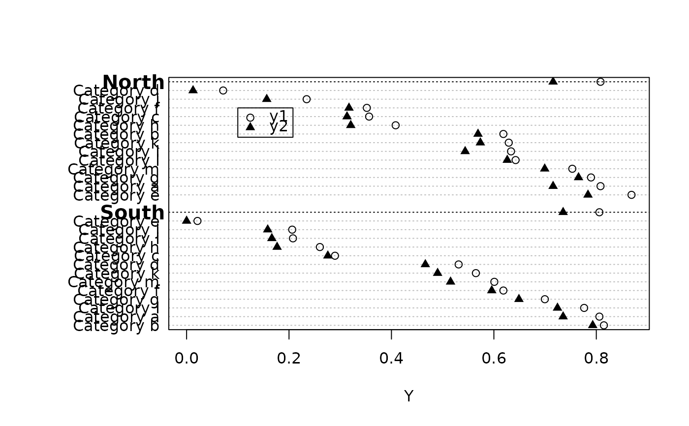 dotchartp(cbind(y1, y2), g, groups=maj, auxdata=n, auxtitle='n',