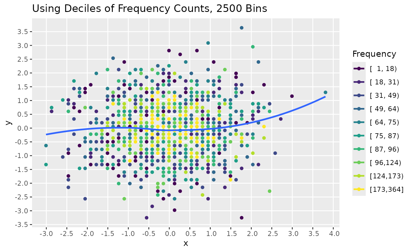 ggtitle("Using Deciles of Frequency Counts, 2500 Bins")
