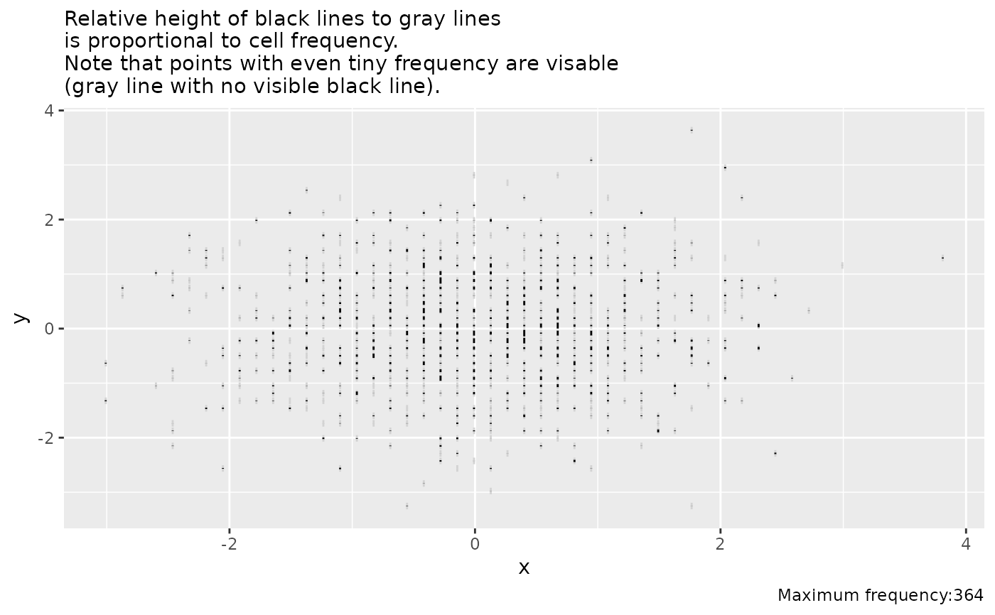 ggfreqScatter(x, y, stick=TRUE) +