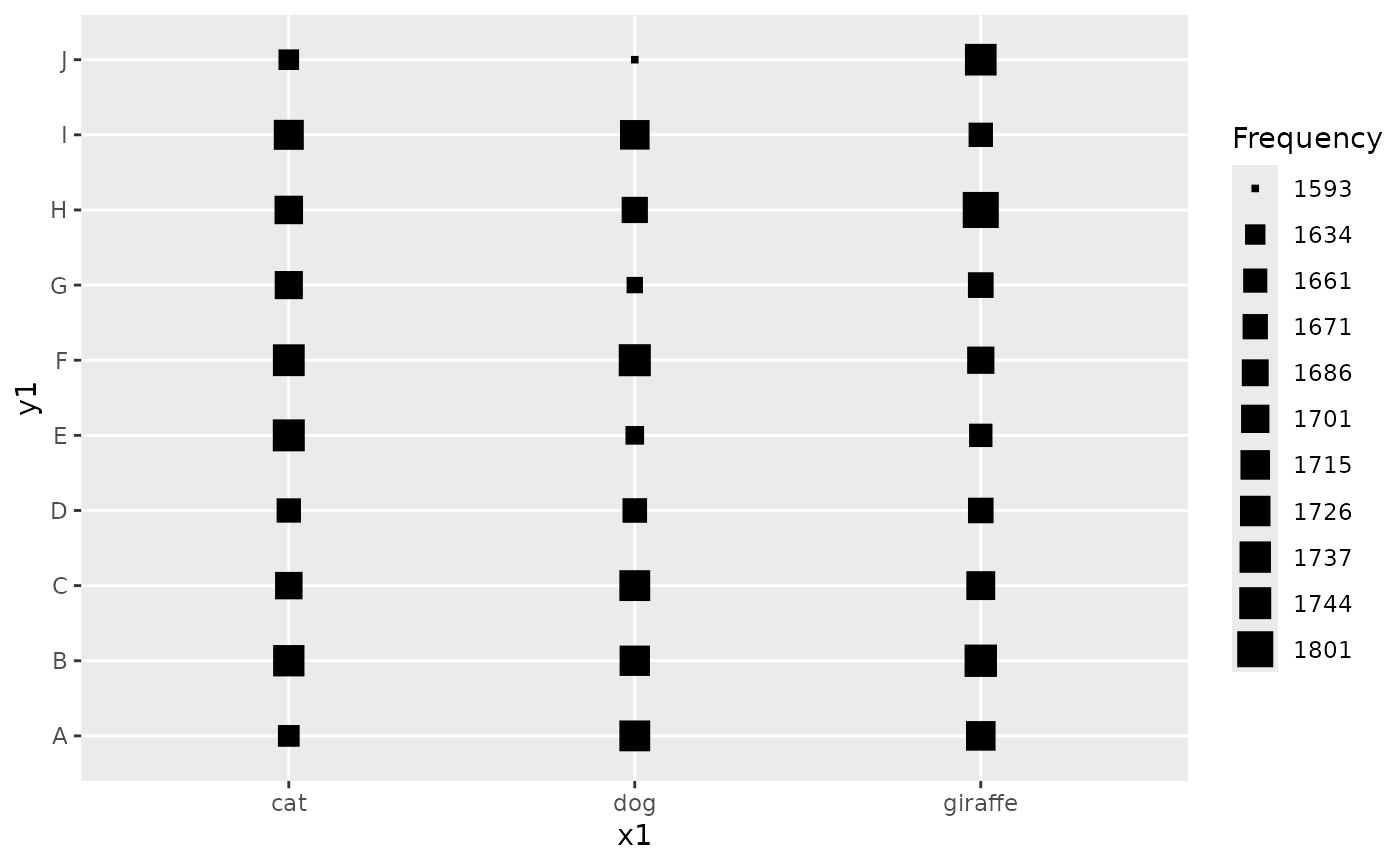 ggfreqScatter(x1, y1, nsize=TRUE, shape=15)