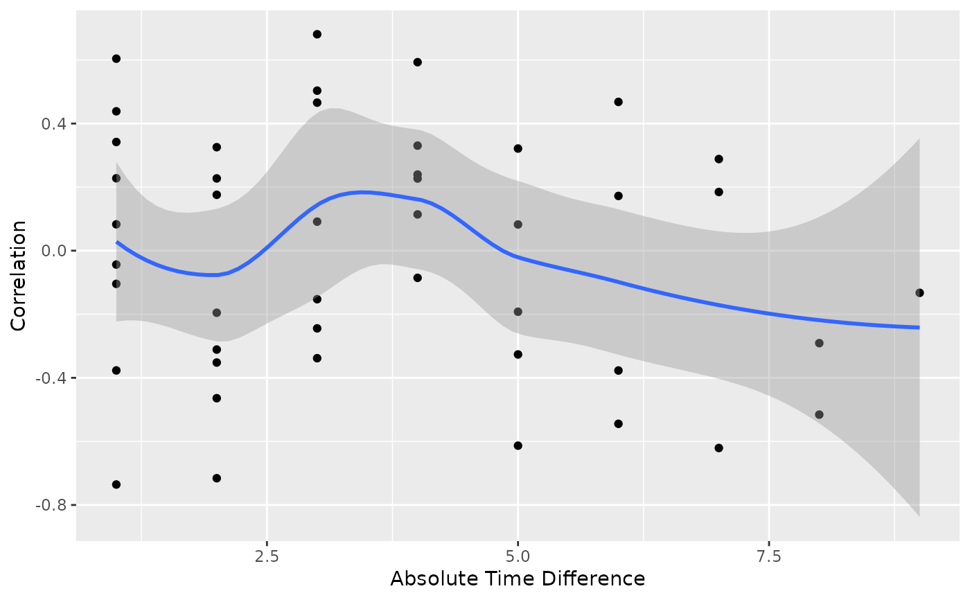 plotCorrM.RdPlot Correlation Matrix and Correlation vs. Time Gap