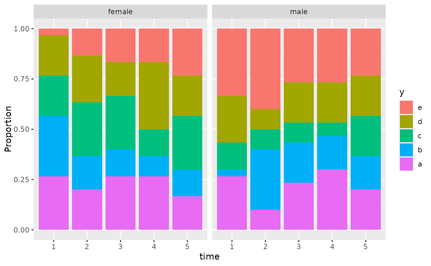 propsPO(y ~ time + sex, data=d) # may add nrow= or ncol=