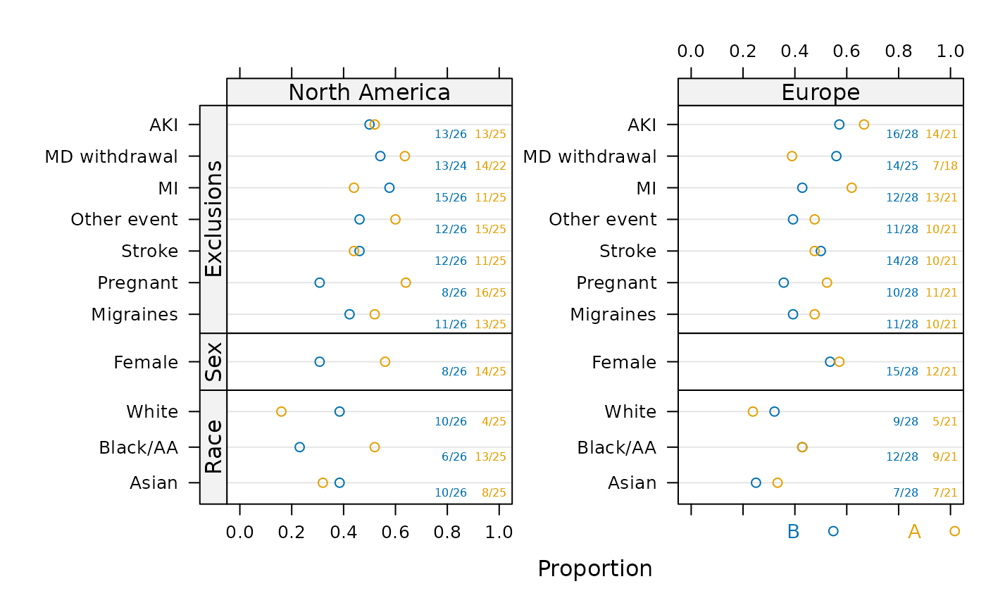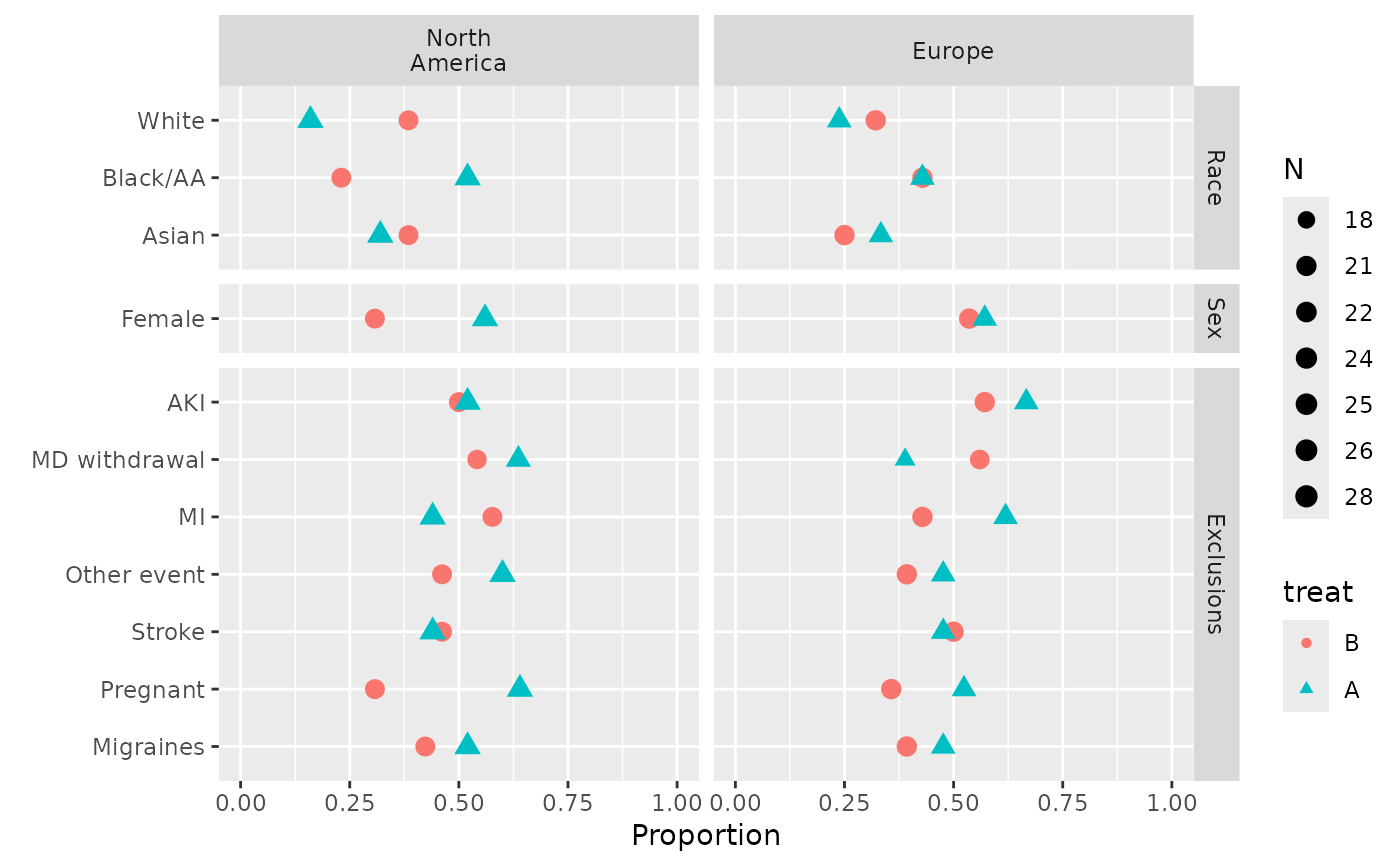 s <- summaryP(race + sex + ynbind(x1, x2, x3, x4, x5, x6, x7, label='Exclusions') ~