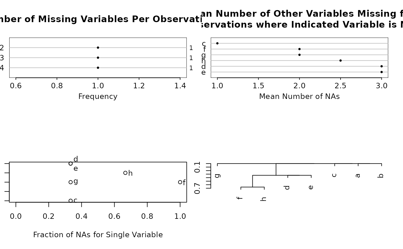 in each variable by itself. naclus also computes na.per.obs, the