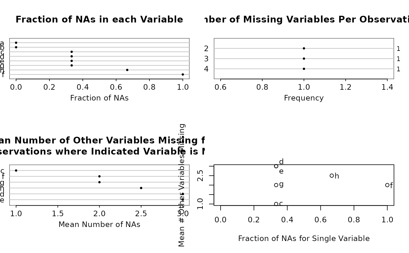 naplot(obj, which=c('all','na per var','na per obs','mean na',