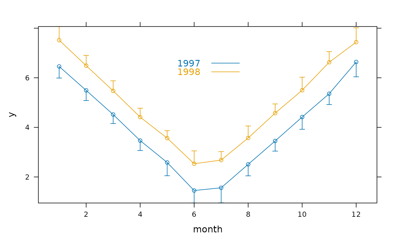 xYplot ( Cbind ( y, Lower, Upper ) ~ month, groups=year,