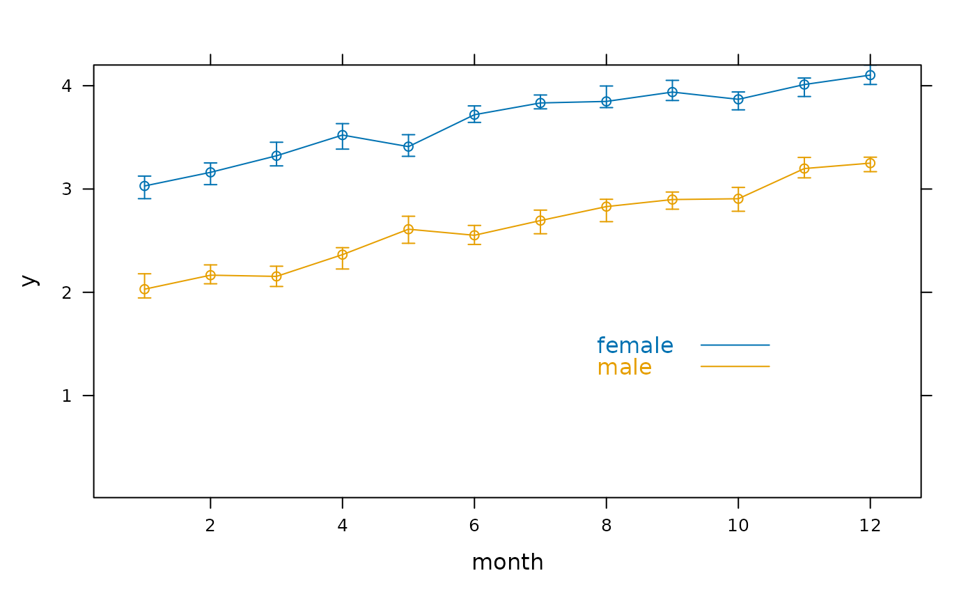 # Can also use Y <- cbind(y, Lower, Upper); xYplot(Cbind(Y) ~ ...)